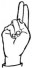 На ћирилици написано МОМИРКА СТАНОЈЕВ састоји се из 15 слова [?]. Исписано ћириличном једноручном азбуком за глувонеме: